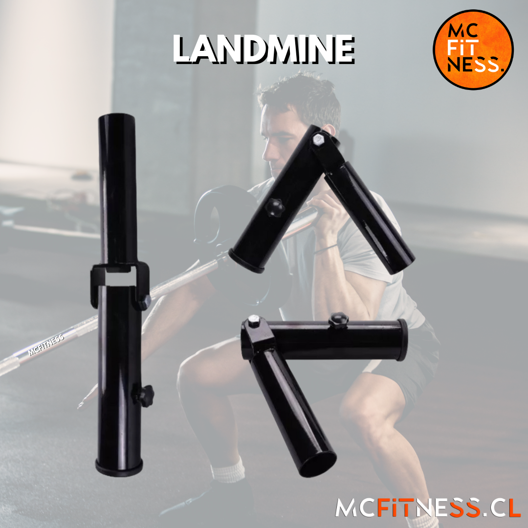 Una Landmine es un dispositivo compuesto por un tubo pivotante en el que se inserta uno de los extremos de una barra olímpica. El otro extremo de la barra se utiliza como el punto de acción para realizar diversos ejercicios. Este diseño permite movimientos angulados, que son menos restrictivos que los ejercicios tradicionales con barra fija, ofreciendo una mayor libertad de movimiento y reduciendo el estrés en las articulaciones.